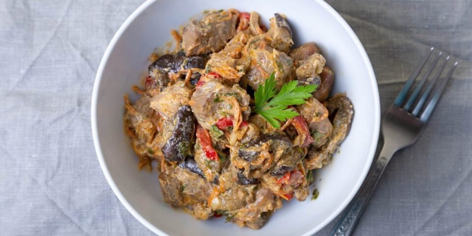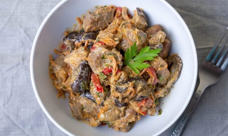 - Tarp ingredientų gali būti pomidorų pasta. Tačiau galite žengti toliau ir specialiai troškiniui paruošti aštrų arba pikantišką padažą su prieskoniais. Taip troškinys taps įdomesnis.