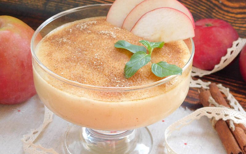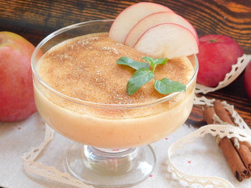Želatiną ištirpinkite vandenyje. Leiskite jai išbrinkti. Paruoštus obuolius užpilkite puse stiklinės vandens. Į mišinį įberkite šiek tiek cinamono ir vanilino bei suminkštėjusią želatiną. Šį mišinį plakite mikseriu 10 minučių.