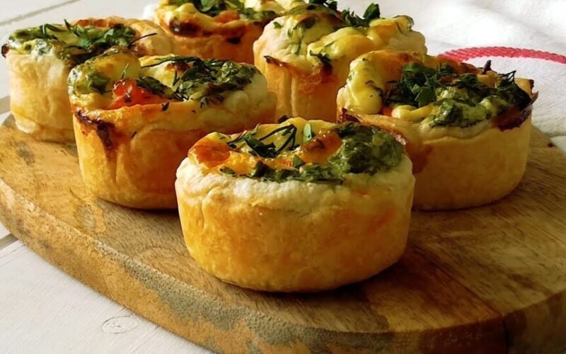 Reikės nedidelių porcijinių formelių. Iš kolosų išimkite tešlą ir sudėkite juos į paruoštas formeles. Toliau daržoves aptepkite sirupu. Kiaušinį sumaišykite su viršūnėlėmis ir supilkite įdarą.