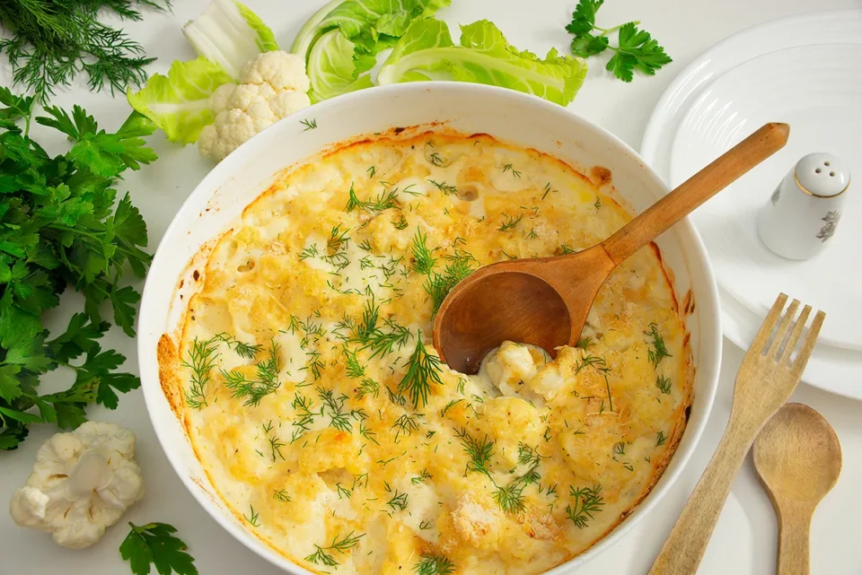 Kaip paruošti keptus žiedinius kopūstus grietinėje vaikams