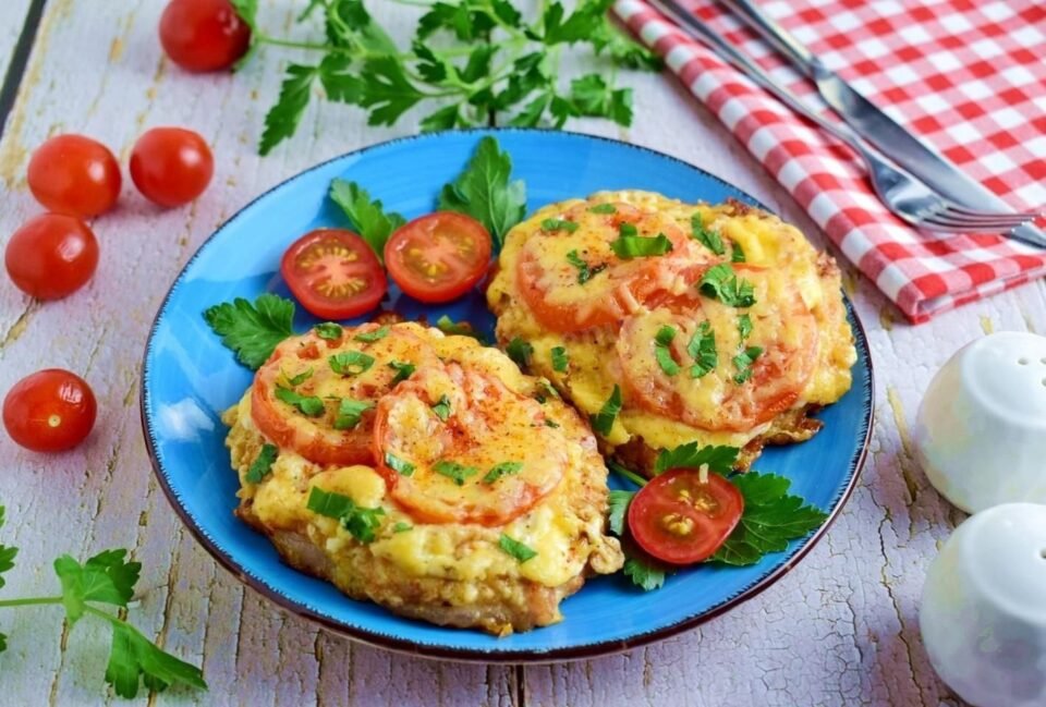 Jei norite, ant viršaus galite uždėti plonus pomidoro ir tarkuotos kietosios sieros apskritimus ir trinti po uždaru vikšru, kol siera išsilydys. Gausite kažką panašaus į prancūziško stiliaus kotletą.